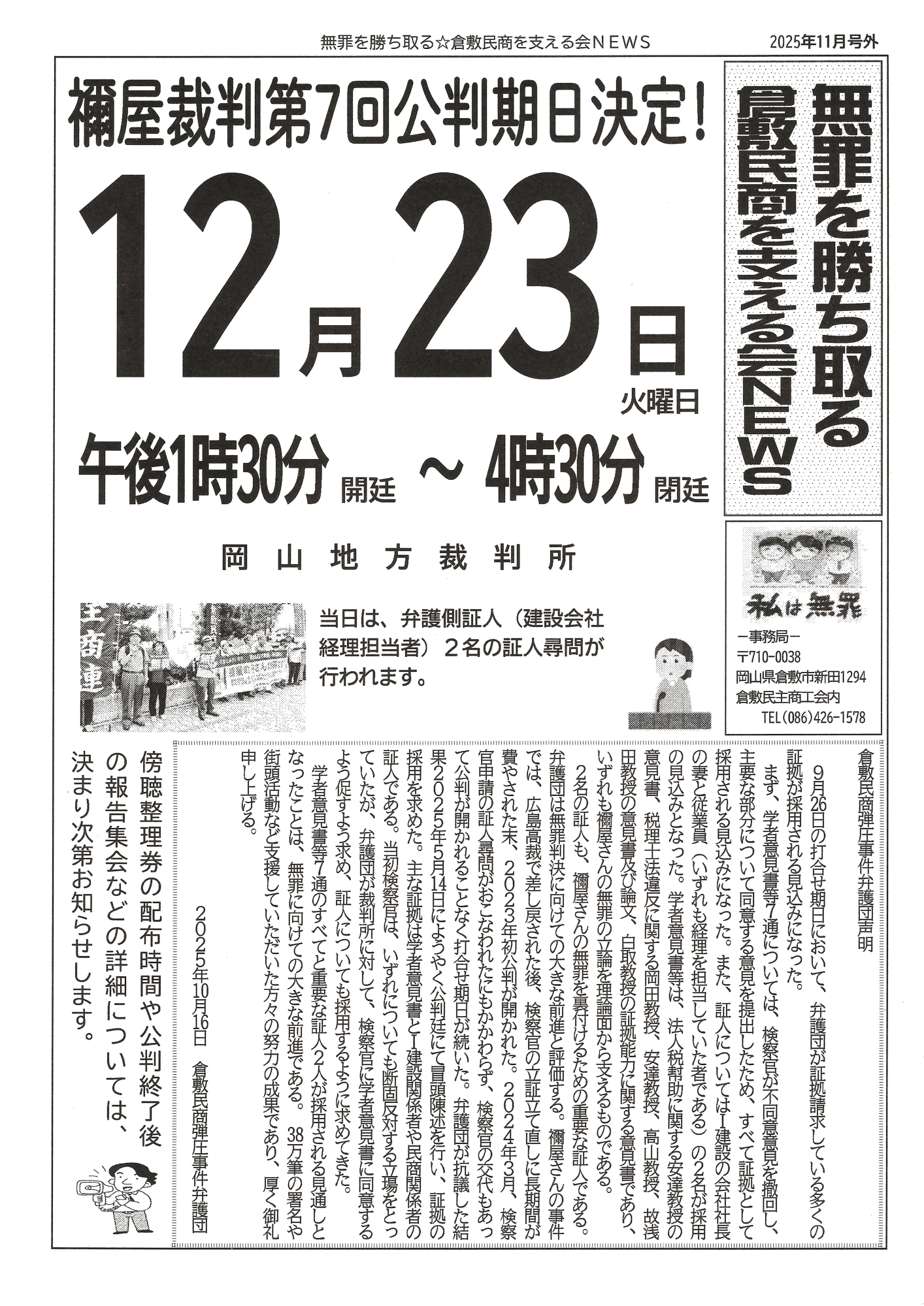 日頃より倉敷民商弾圧事件へご支援をいただき、ありがとうございます。